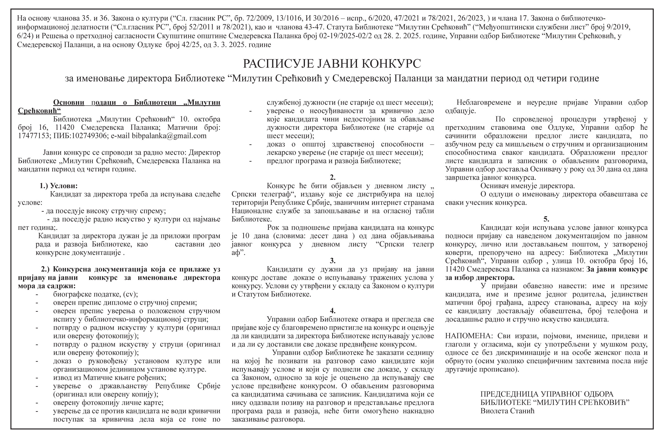 Raspisan je konkurs za direktora Biblioteke